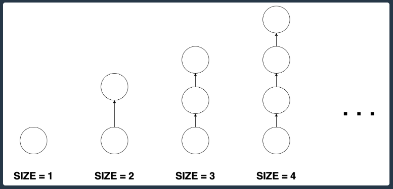 크기가 n인 막대 모양 그래프는 n개의 정점과 n-1개의 간선이 있습니다. 막대 모양 그래프는 임의의 한 정점에서 출발해 간선을 계속 따라가면 나머지 n-1개의 정점을 한 번씩 방문하게 되는 정점이 단 하나 존재합니다. 막대 모양 그래프의 형태는 다음과 같습니다.