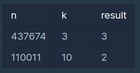 정수 n과 k가 매개변수로 주어집니다. n을 k진수로 바꿨을 때, 변환된 수 안에서 찾을 수 있는 위 조건에 맞는 소수의 개수를 return 하도록 solution 함수를 완성해 주세요.