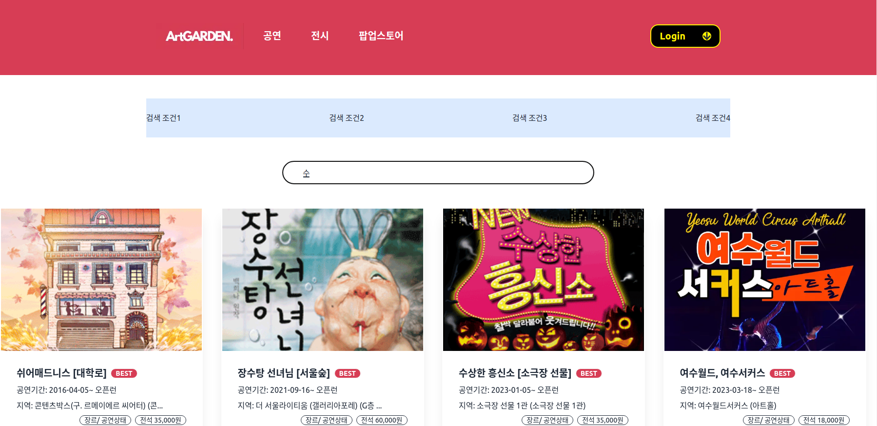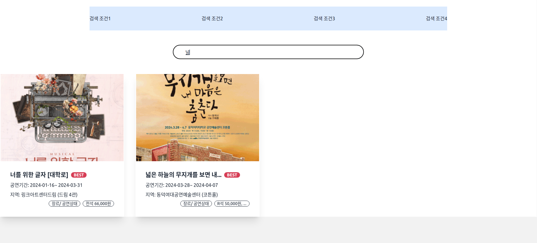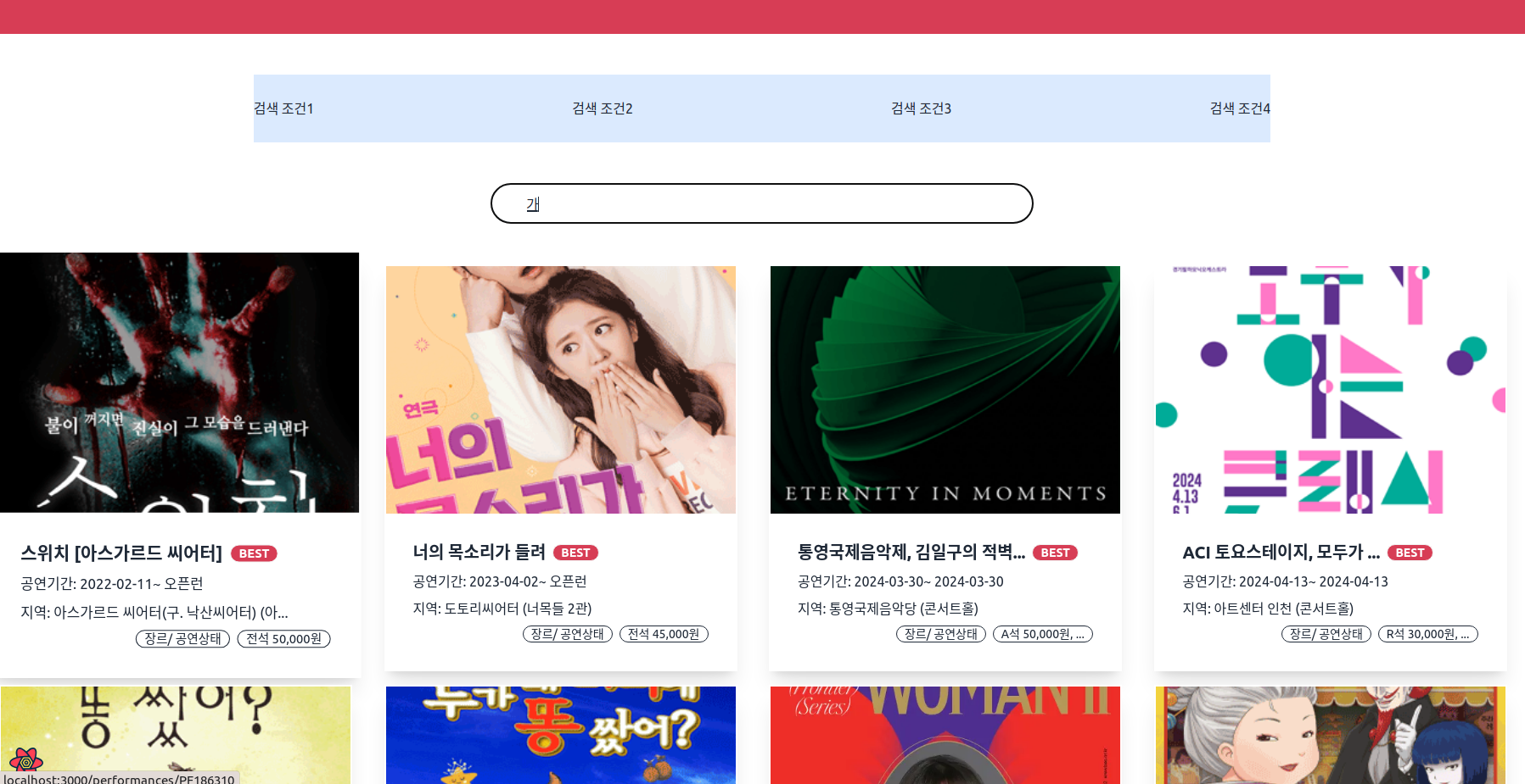 그 값과 일치하는 공연 이름 데이터만 조건식에 맞게 뿌려주면 된다.