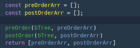 - 후위 함수에 bTree와 배열을 넣어준다 => postOrderArr에 후위 순회한 값이 담기게