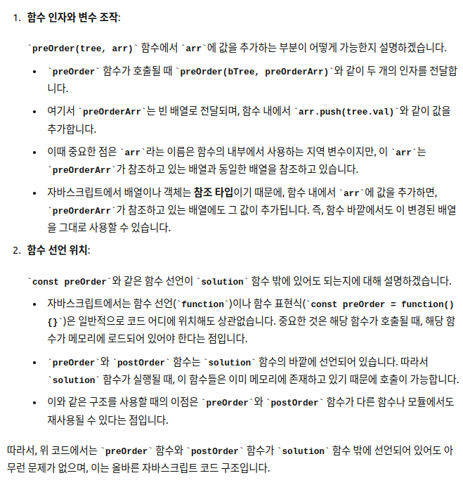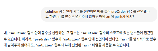 - 전위 함수에 bTree와 배열을 넣어준다 => preOrderArr에 전위 순회한 값이 담기게
