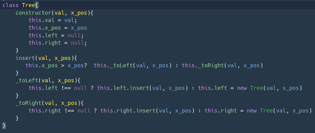 - 이 생성자는 val과 x_pos라는 인자를 받아서 트리 노드의 값을 val에, x위치를 x_pos에 저장한다.