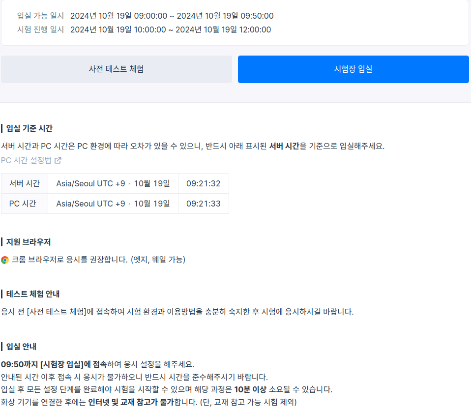 - 본검사 일정: 10월 19일(토) 10:00 ~12:00 / 09:30까지 입실완료 필수