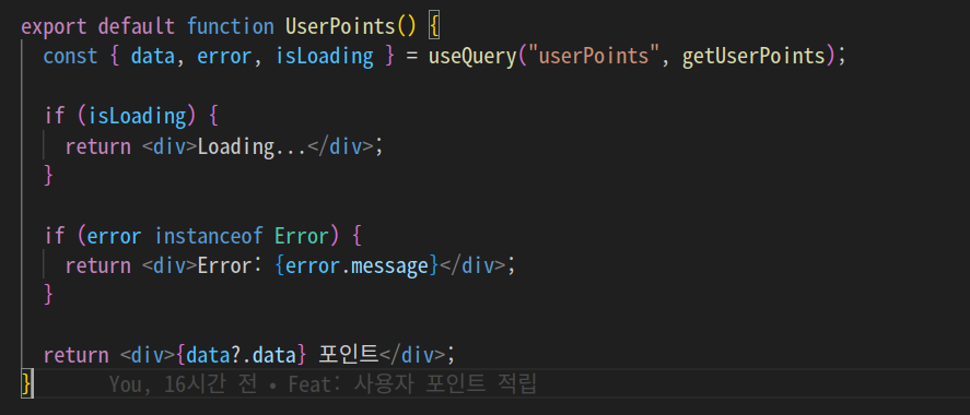 userPoints: 다른 컴포넌트에서 사용중인 쿼리