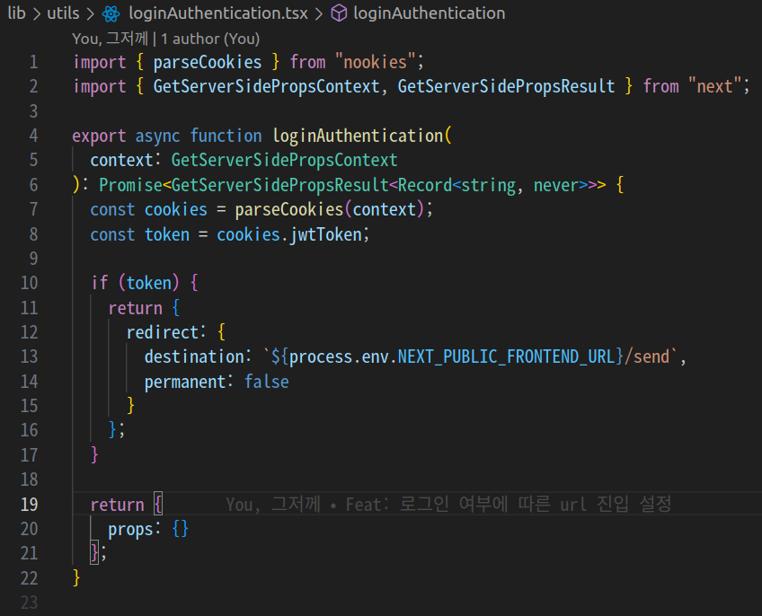login 페이지에 진입할 때 SSR 방식으로 loginAuthentication 함수를 실행했다.