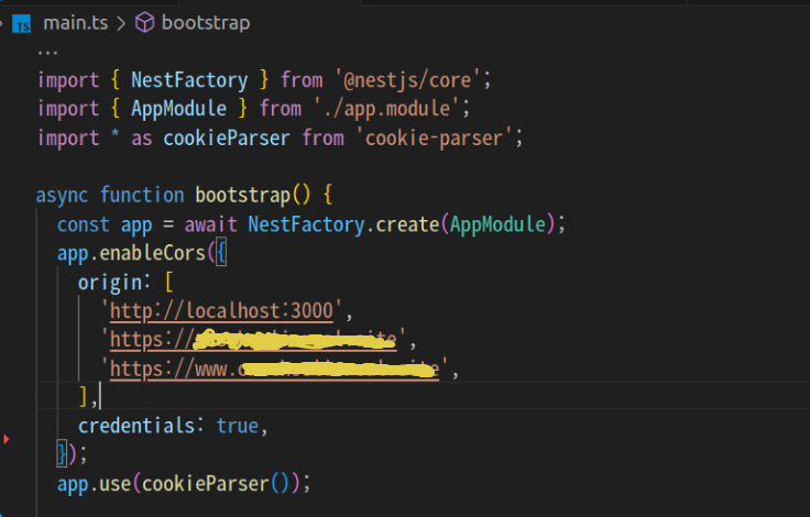 이렇게 cors 설정을 nest.js 파일에도 하고