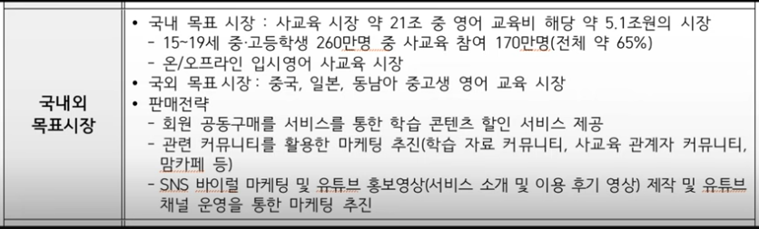 - 이 시장에 속해있는 학부모, 학원 선생님이라는지 구체적인 시장이나 시장의 참여자들로 정의를 한다면, 시장 크기도 훨씬 구체화되고 제품의 개성도 더 드러날 것