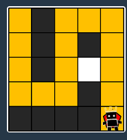 위 그림에서 검은색 부분은 벽으로 막혀있어 갈 수 없는 길이며, 흰색 부분은 갈 수 있는 길입니다. 캐릭터가 움직일 때는 동, 서, 남, 북 방향으로 한 칸씩 이동하며, 게임 맵을 벗어난 길은 갈 수 없습니다.