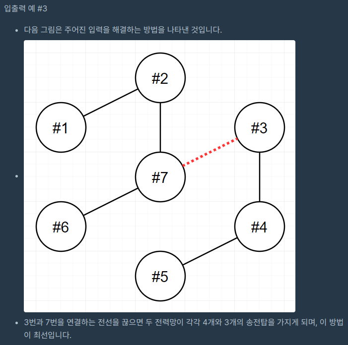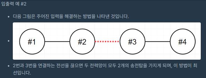 전력망 네트워크가 하나의 트리 형태가 아닌 경우는 입력으로 주어지지 않습니다.