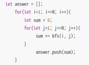 for(let j=1; j<=N; j++){// j의 노드까지 관계수를 계속 더해준다.