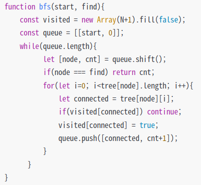 function bfs(start, find){ //start가 find를 찾는데까지 걸리는 관계 수 찾기