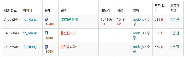 문제 출처 https://school.programmers.co.kr/learn/courses/30/lessons/92341 프로그래머스 코드 중심의 개발자 채용. 스택 기반의 포지션 매칭. 프로그래머스의 개발자 맞춤형 프로필을 등록하고, 나와 기술 궁합이 잘 맞는 기업들을 매칭 받으세요. programmers.co.kr 문제 풀이 힌트 01. 주어진 records 배열을 순회하면서 내가 원하는 정보의 형태로 저장할 것이다. => cars라는 객체 생성 후, 차량번호를 key로 설정하고 값으로는 "누적시간"과 IN일 때 임시로 시간(OUT일 땐 저장되어있는 IN 값과 시간 차이를 구하고 누적시간에 더해줄 것임)을 저장할 것. 02. 출차 하지 않은 차량이 있다면 23:59 로 누적시간을 구해줘야 한다. ..